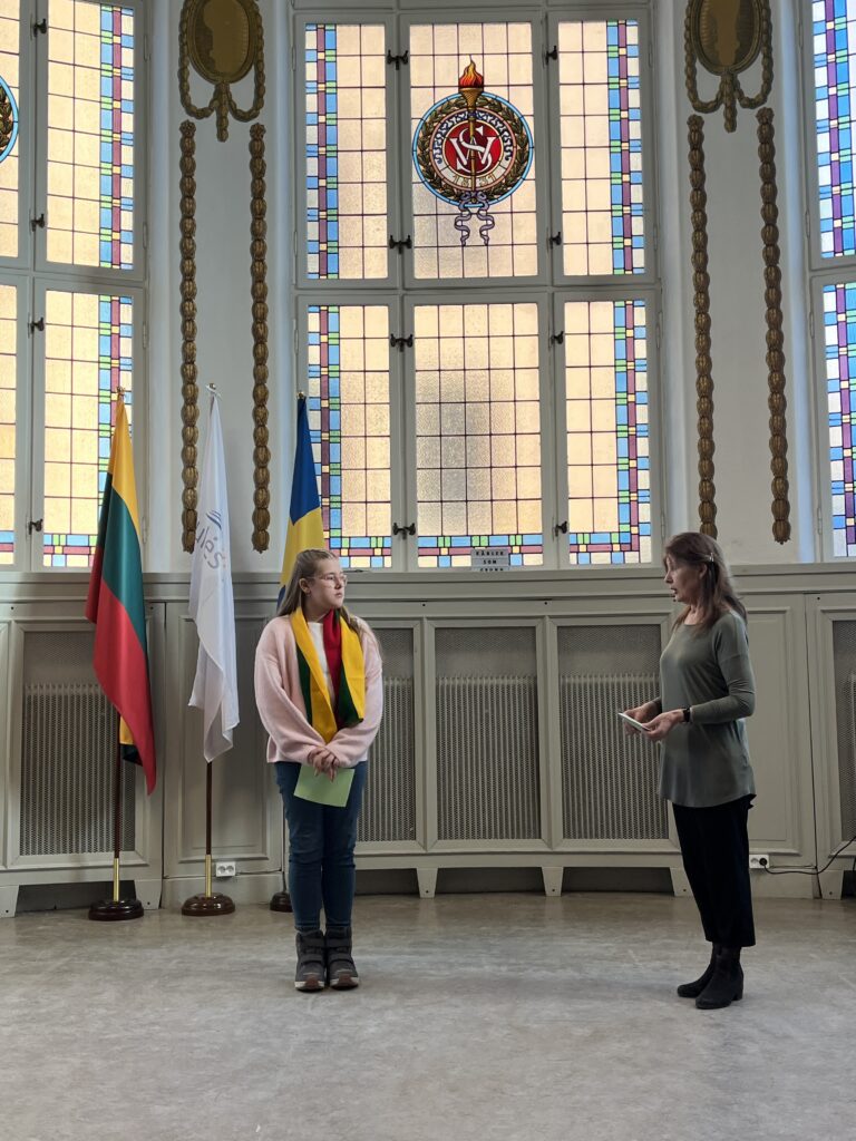 Šventiniame minėjime žodį tarė Lietuvos Respublikos ambasadorius Švedijos Karalystėje Linas Linkevičius atkreipęs dėmesį, kad Lietuva yra ne tik vieta žemėlapyje – Lietuva yra visur, kur skamba lietuviškas žodis. Vasario 15-ąją jis garsiai ir įvairiais balsais skambėjo mūsų mokykloje! Susirinkusiuosius sveikino ir Mokyklos tarybos pirmininkė Rasa Cikanavičiūtė Hernández.