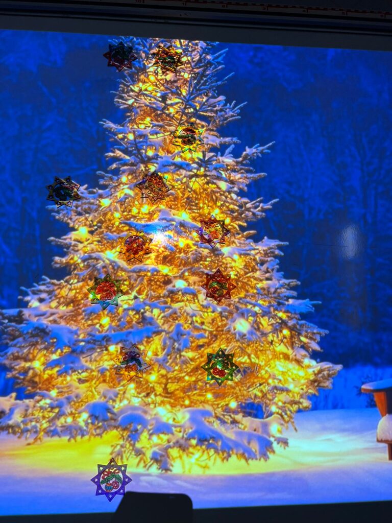 Spindulėlio klasės mokiniai kartu su mokytoja Diana papuošė virtualią eglutę savo pačių dekoruotais žaisliukais – kiekvienas jų unikalus, kupinas kūrybiškumo ir kalėdinės dvasios.